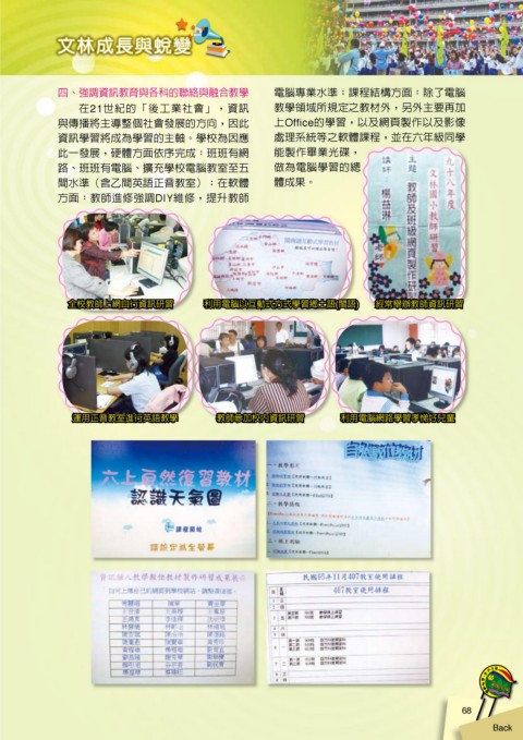 四、 強調資訊教育與各科的聯絡與融合教學 電腦專業水準;課程結構方面:除了電腦