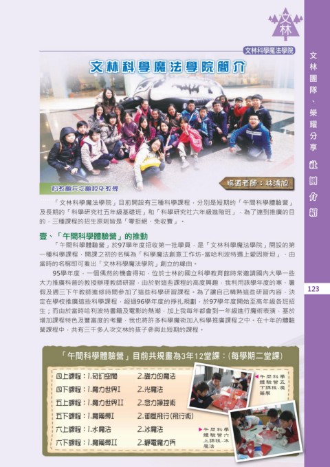 「午間科學體驗營」於97學年度招收第一批學員,是「文林科學魔法學院」開設的第