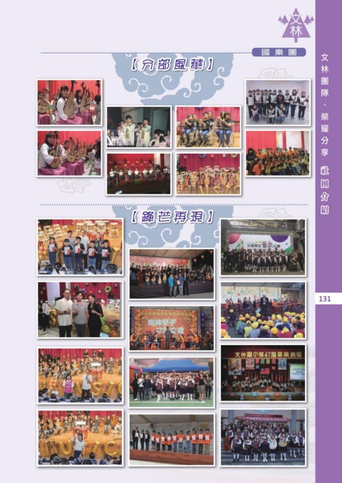 、 團 隊 分 享 榮 耀 林 文 國樂團 國樂團 分 享 耀 林 團 隊 榮 、 文 【分部風華】 紹 團 社 介 團 社 紹 介 【亮眼成果】 【鋒芒再現】 130 131