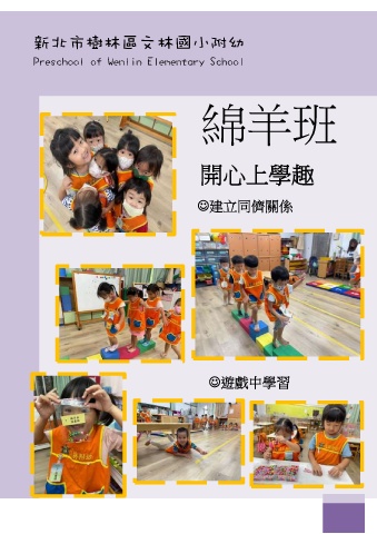 新北市樹林區文林國小附幼 Preschool of Wenlin Elementary School 綿羊班 測量體適能 開心上學 趣 建立同儕關係 遊戲中學習