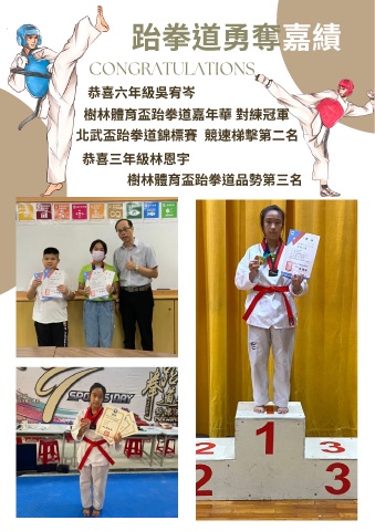 跆拳Ds奪嘉績 CONGRATULATIONS 恭喜六年sÏI 樹林Ä-盃跆拳D嘉年( 對練冠軍 û武盃跆拳D錦ý賽 競¾梯擊]⼆ 恭喜三年s林恩宇 樹林Ä-盃跆拳D品¢]三