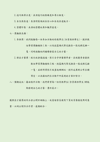 2.傑出才藝獎:經行政會議通過,影片合乎評審標準者,表現優秀者提供