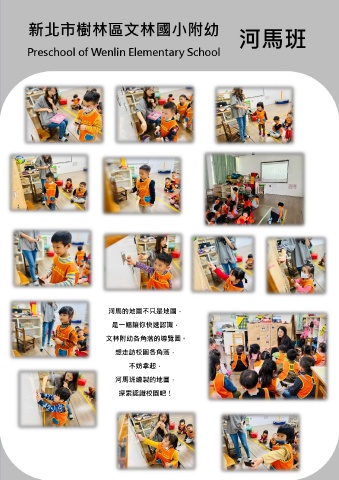河馬的地圖不只是地圖, 是一幅讓你快速認識, 文林附幼各角落的導覽圖。 想走訪校園各角落, 不妨拿起, 河馬班繪製的地圖, 探索認識校園吧!