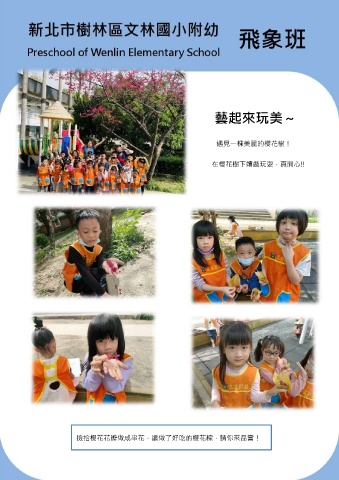 藝起來玩美~ 遇見一棵美麗的櫻花樹! 在櫻花樹下嬉戲玩耍,真開心!! 撿拾櫻花花瓣做成串花,還做了好吃的櫻花粽,請你來品嘗!