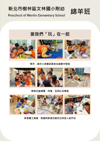 當我們「玩」在一起 每天,綿羊小孩都認真地在遊戲中學習 學習怎麼溝通、同理、互相以及尊重 學會看工具書、保護與學會欣賞自己與他人的作品