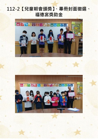 112-2【兒童朝會頒獎】、畢冊封面徵選、 福德宮獎助金