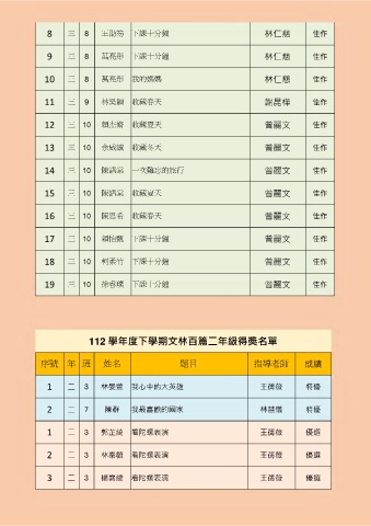112 學年度下學期文林百篇二年級得獎名單